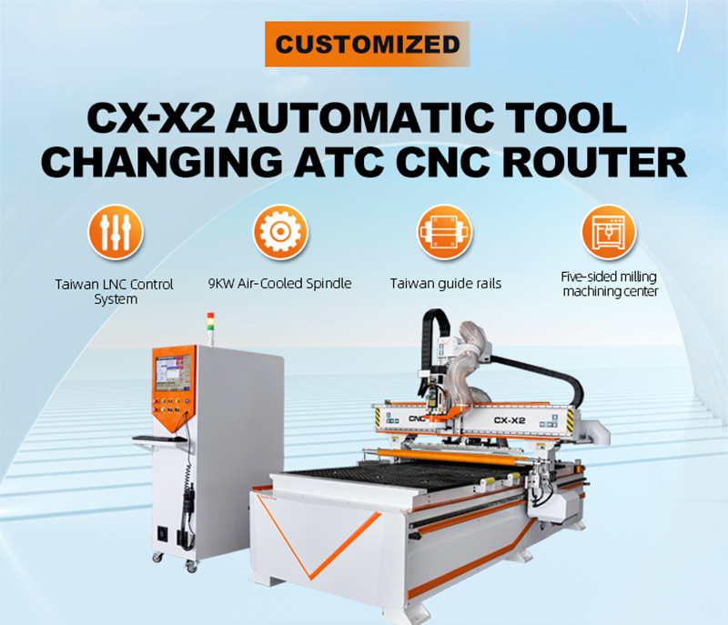 CX-X2 Automatic Tool Changing ATC CNC Router Machine.This is a CNC cutting machine, mainly designed for the cutting and production of the whole house customized furniture, cabinets, wardrobes, shoe cabinets and other panel furniture. It is one of the series of products of Superstar Group Company.