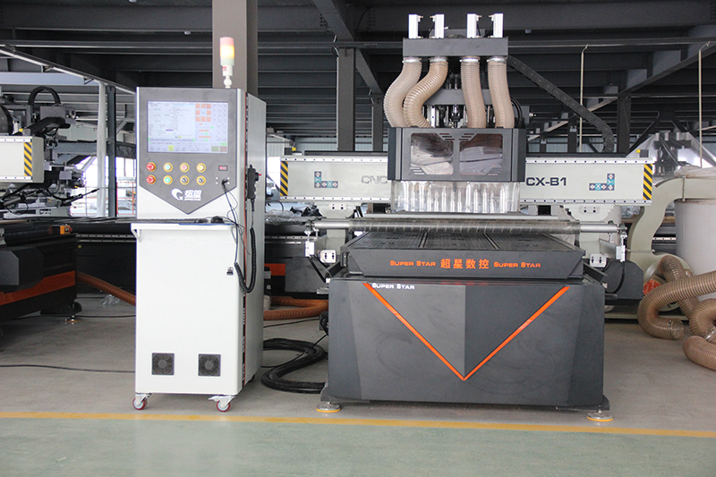 Многоголовочный фрезерный станок с ЧПУ оснащен тайваньской системой управления LNC и быстрорежущими шпинделями мощностью 4,5 и 6 кВт, а прочная рама работает стабильно. В основном используется при обработке панельной мебели.